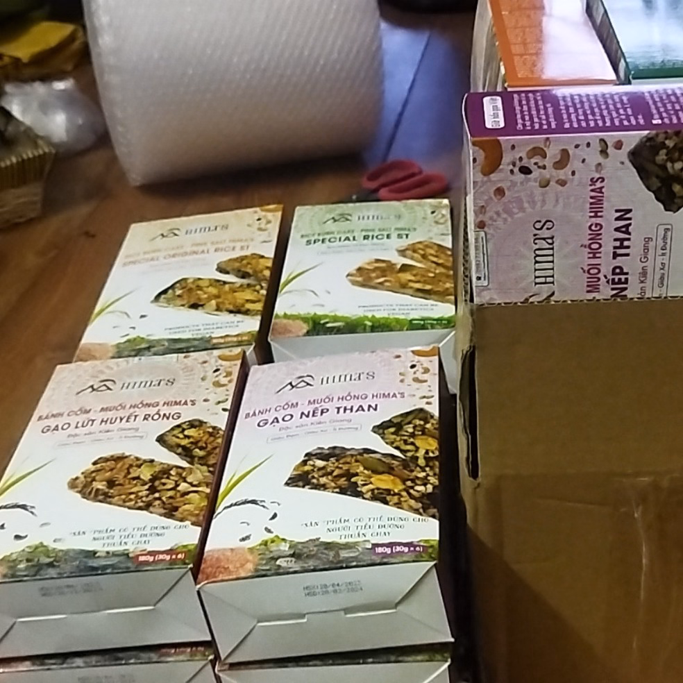 Bánh Cốm Gạo Hima`s sẽ cho bạn “một vé đi tuổi thơ” với hương thơm khó cưỡng từ gạo lứt nguyên cám, vị ngọt say đắm từ mạch nha và vẻ bùi bùi, ngậy ngậy từ hạt điều, rong biển.