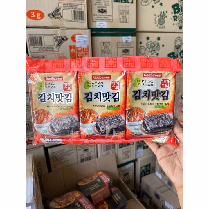 5 Lốc( 15 Gói) Rong Biển Hàn Quốc Vị Kim Chi Godbawee Hàn Quốc -Gdn
