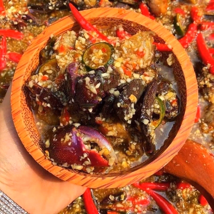 Ba khía được trộn với nước mắm, đường , tỏi, ớt.
