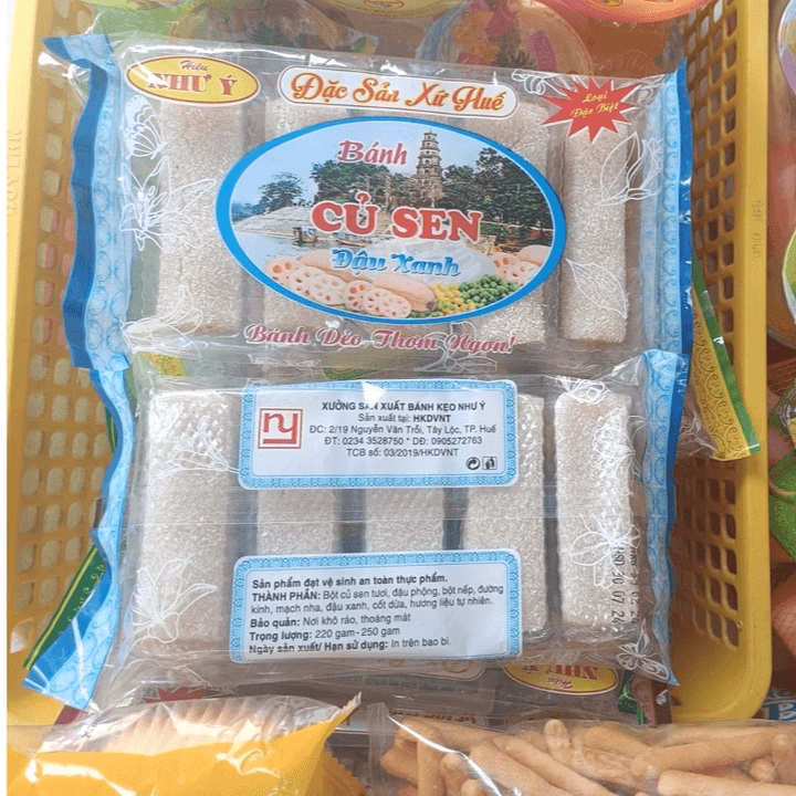 Bánh củ sen đậu xanh Huế là một món ăn vặt rất tốt đối với sức khỏe. Với nguyên liệu chính là củ sen và đậu xanh. Củ sen là một loại củ rất quen thuộc đối với người dân Châu Á.