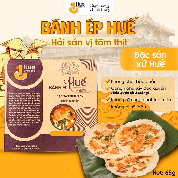 Bánh Ép Huế Hue One Food size lớn vị tôm thịt hải sản hộp 65g
