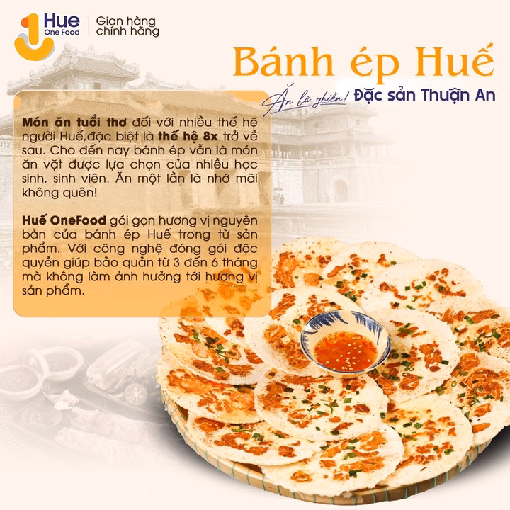 – Bánh ép Huế được hút chân không nên bảo quản được lâu, không hôi dầu và có chứng nhận Atvstp và Haccp.