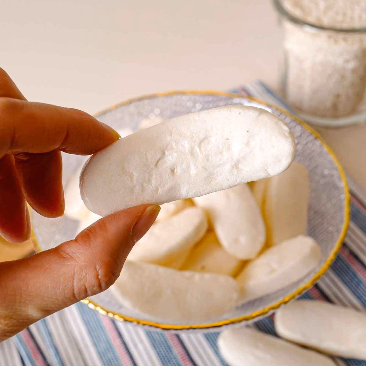 Bánh dạng thanh dẹt giúp bé dễ dàng cầm nắm để tập ăn.