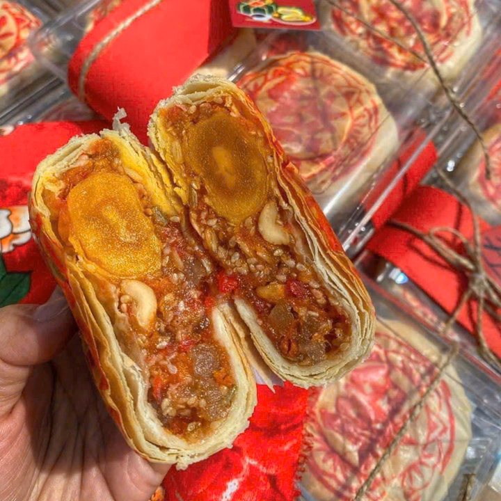 😋😋 Bánh gồm có: Thịt lạp, gà quay, mè trắng, đậu, mứt bí, đường cát trắng, bột mì, mỡ heo, dầu thực vật, muối iốt… tạo nên một hương vị độc đáo, khó cưỡng! 😋😋