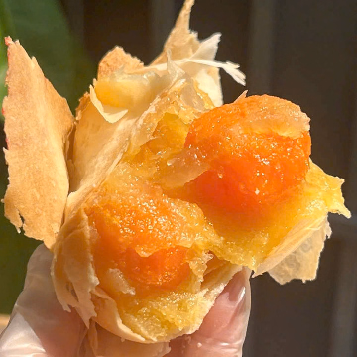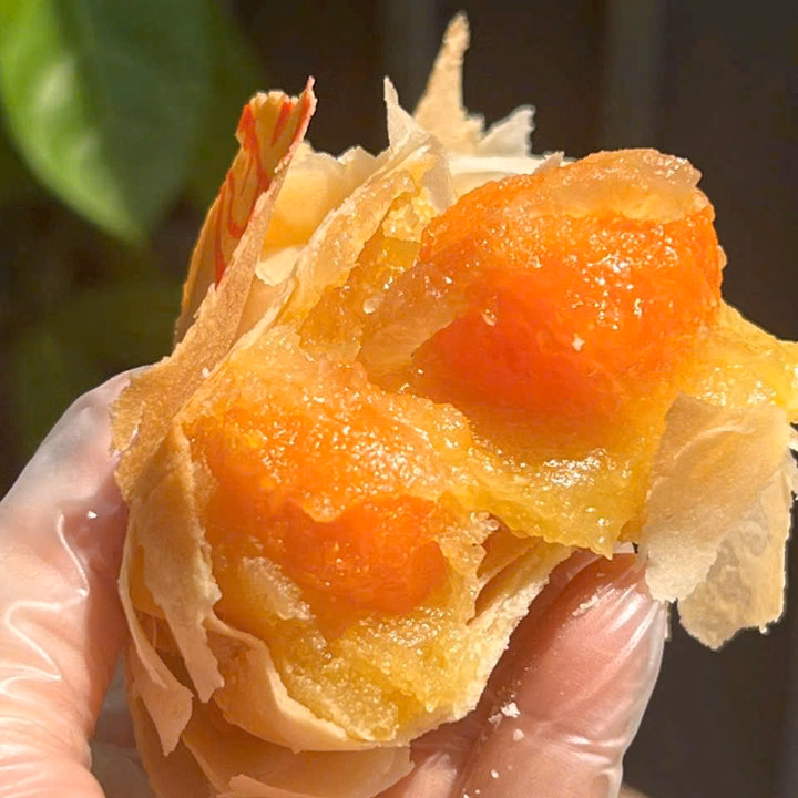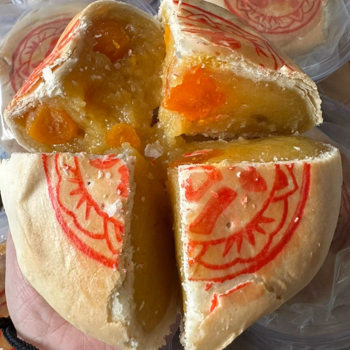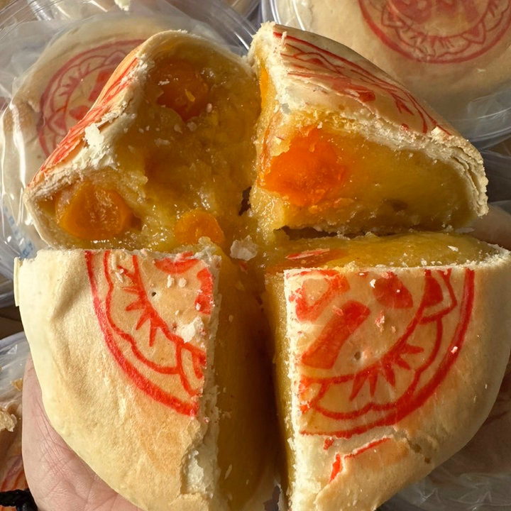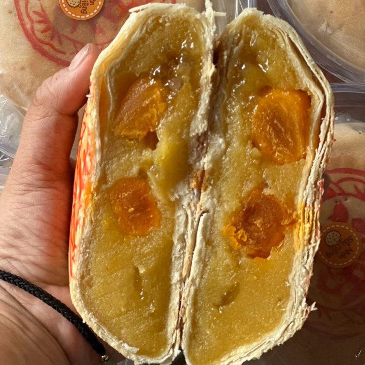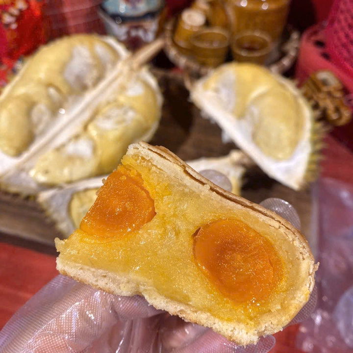 🌸 Mỗi chiếc bánh pía mở ra là một “lễ hội hương vị”: lớp vỏ mềm mịn, thơm lừng mùi sầu riêng tươi. Cắn một miếng thôi, nhân đậu xanh dẻo quện cùng sầu riêng tan chảy, xen lẫn chút mỡ heo xay nhuyễn béo ngậy. Và đặc biệt, trứng muối đỏ au, mằn mặn bùi bùi khiến hương vị thêm tròn đầy, khó cưỡng.