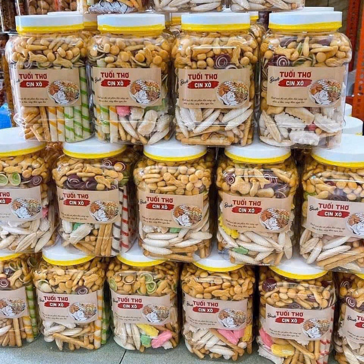 👉 Một vé trở về tuổi thơ chỉ với 1 hủ 500g – đầy ắp những loại bánh “huyền thoại” mà ai cũng từng mê say!