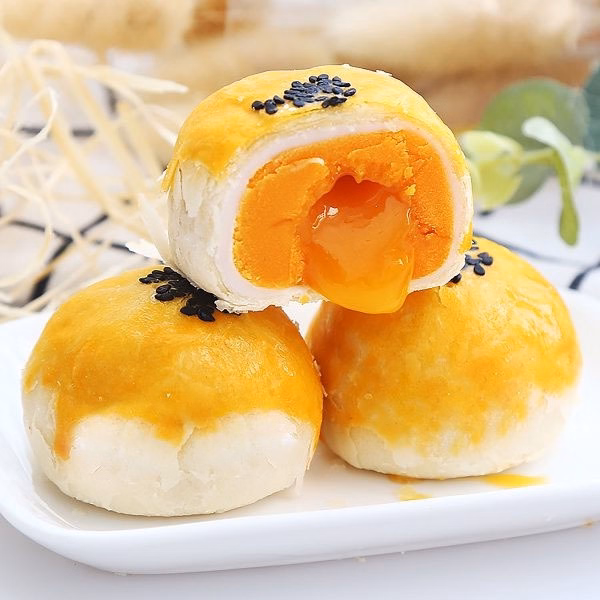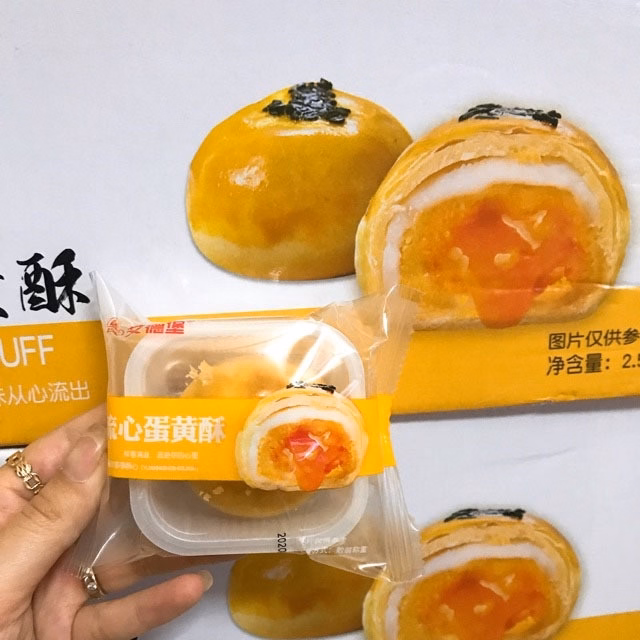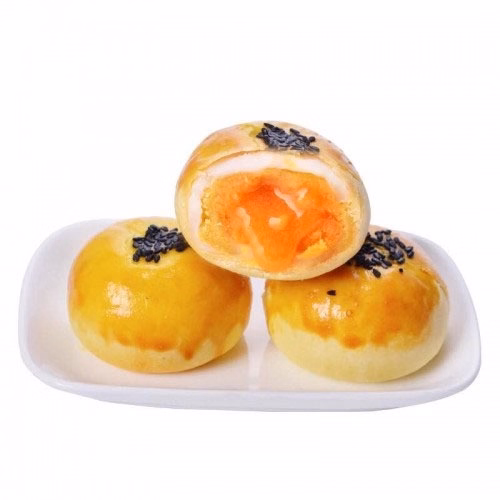 👉 Bánh vỏ ngoài như bánh pía, bên trong có lớp Mochi dẻo dẻo và trứng chảy. Có vị mặn vị ngọt – thơm bùi.
