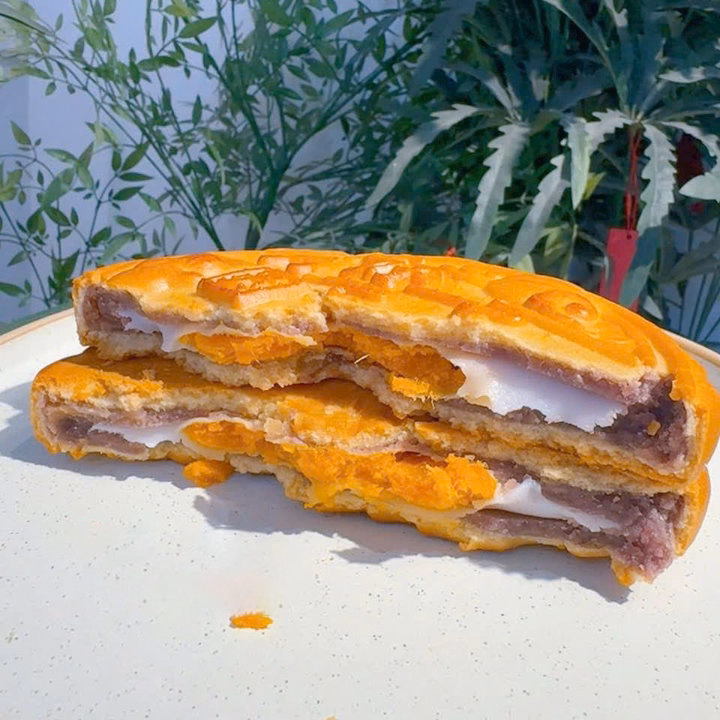 Ngấy mỡ ngấy gà chứ không hề ngấy bánh nha ! Một dòng bánh nướng mới nhân mochi trứng muối siêu ngon ! Miếng bánh dẻo ngon , sánh quyện với khoai môn mềm thơm . Chân ái là lớp mochi dẻo ngọt nhẹ , lớp trứng ruốc béo ngậy . Ngọt ngọt , mặn mặn . Một hớp trà thơm , chát nhẹ dùng hoà . Mê biết bao .