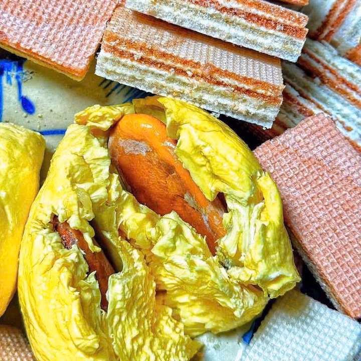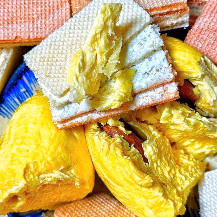 • Nhân kem sầu riêng đậm đà, làm từ cơm sầu riêng tươi 🌴