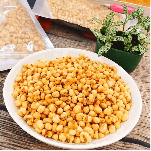 Bắp nếp sấy giòn là món ăn vặt nhưng không gây béo, vị mặn, hơi cay, thơm ngon, giòn rụm