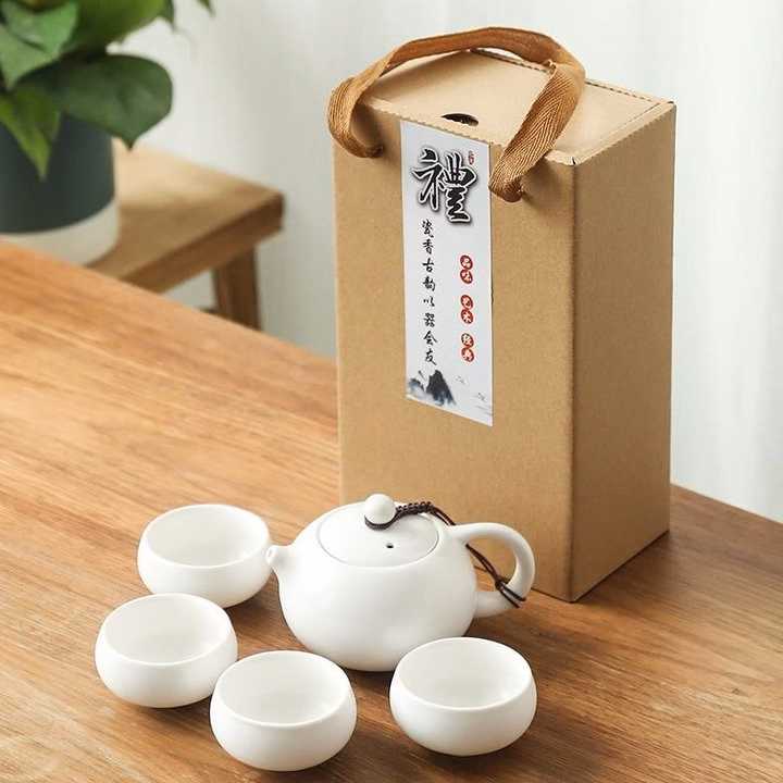 Bộ Ấm Chén Sứ Cao Cấp Hộp Giấy 5 Chi Tiết – Sương Mai