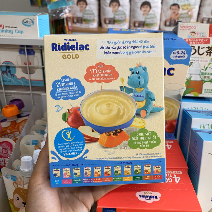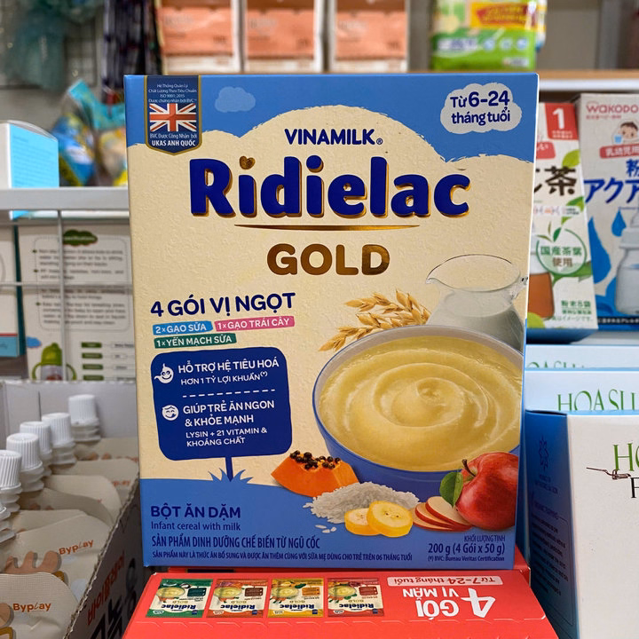 Bột ăn dặm Ridielac Gold dễ tiêu hóa được nghiên cứu bởi các chuyên gia từ Trung tâm nghiên cứu dinh dưỡng và phát triển sản phẩm Vinamilk, đáp ứng nhu cầu dinh dưỡng cho trẻ từ 6 đến 24 tháng tuổi, giúp bổ sung các dưỡng chất, hỗ trợ bé phát triển thể chất trong thời gian ăn dặm.
