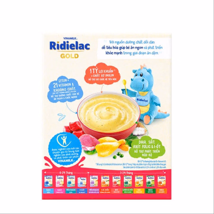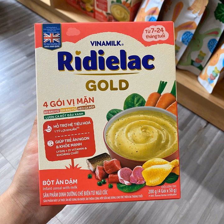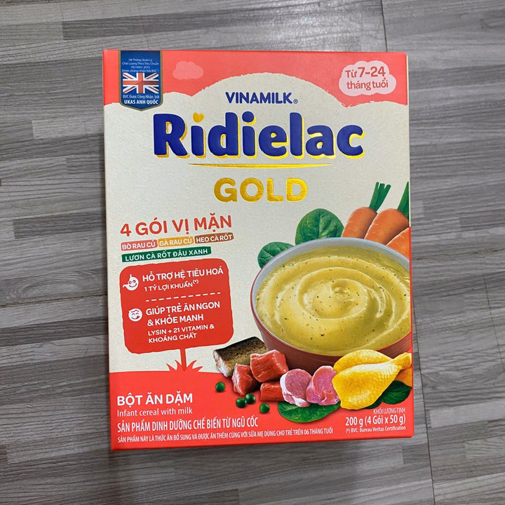 1. Tên sản phẩm: Bột ăn dặm Ridielac Gold 4 gói Vị Mặn Hg 200g