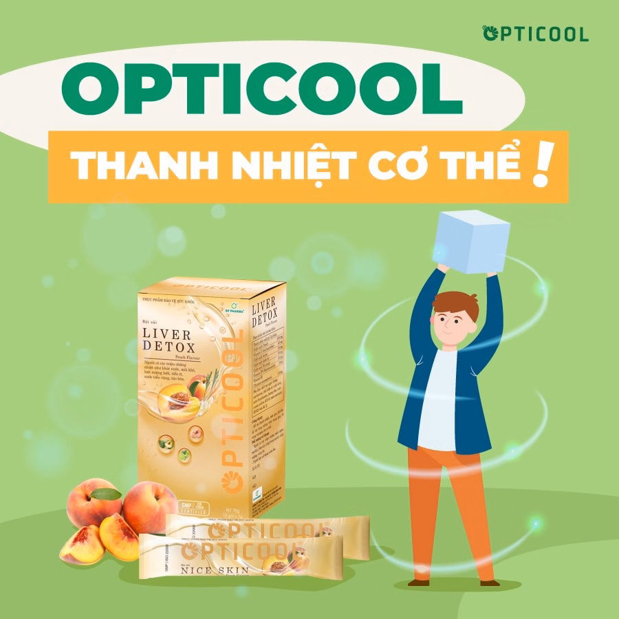 Bột sủi Opticool thanh nhiệt với 2 hương vị hấp dẫn là sự kết hợp từ các chiết xuất thảo mộc thiên nhiên có tính mát giúp giảm nhanh các triệu chứng nóng trong người, nhiệt miệng, khô môi đồng thời hỗ trợ mát huyết, lợi tiểu, giải độc và tăng cường chức năng gan.