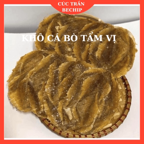 🐟 Cá bò khô được chế biến từ cá bò, một loài cá biển có thịt dai và ngọt, đã rút xương và ép thành từng miếng, khi ăn bạn cần nướng qua cồn hoặc than, dùng chày đập tơi. Thưởng thức cùng tương ớt sẽ cảm nhận được mùi thơm đặc trưng và vị dai ngọt của cá bò. 🐟