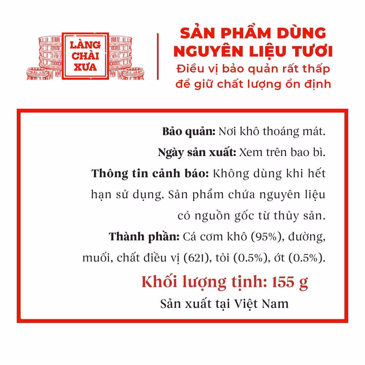 Cá Cơm Rim Tỏi Ớt Làng Chài Xưa Loại 1 Đặc Biệt Tẩm Ướp Thơm Ngon 300 Năm Truyền Thống Hủ 155G