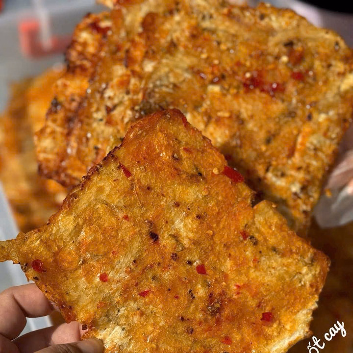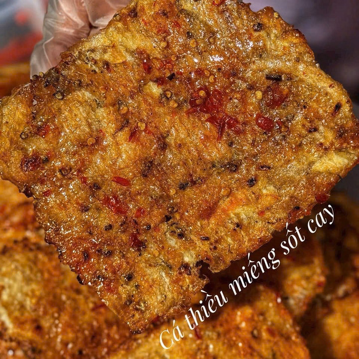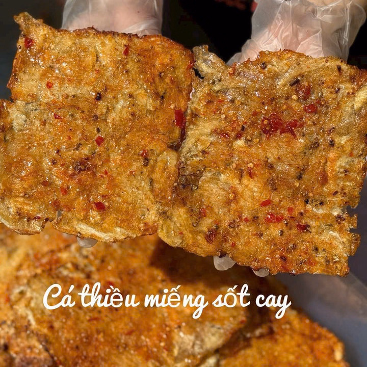 🐟 Miếng cá thiều tươi ngon, được tẩm ướp sốt cay đặc biệt, sấy giòn rụm.