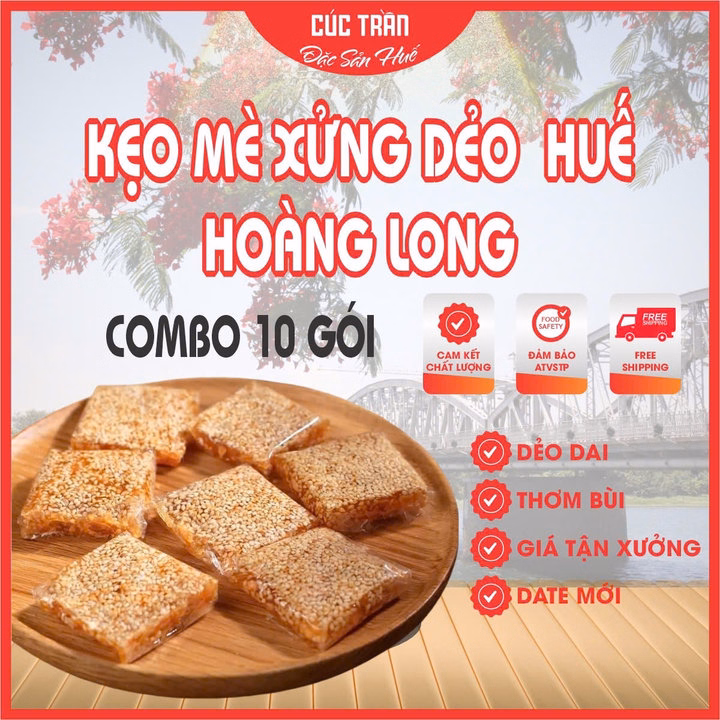 Combo 10 Gói ( Gần 2 Kg ) Kẹo Mè Xửng Dẻo Huế Hiệu Cúc Trần: Dẻo, Dai, Thơm, Bùi Béo Ăn Là Ghiền – Ctb835