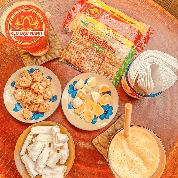 👉Sản phẩm được chế biến bằng công nghệ truyền thống, tạo nên độ giòn và ngọt thanh đặc trưng. Đến Huế, du khách không thể bỏ qua cơ hội thưởng thức kẹo đậu nành vôi Huế.