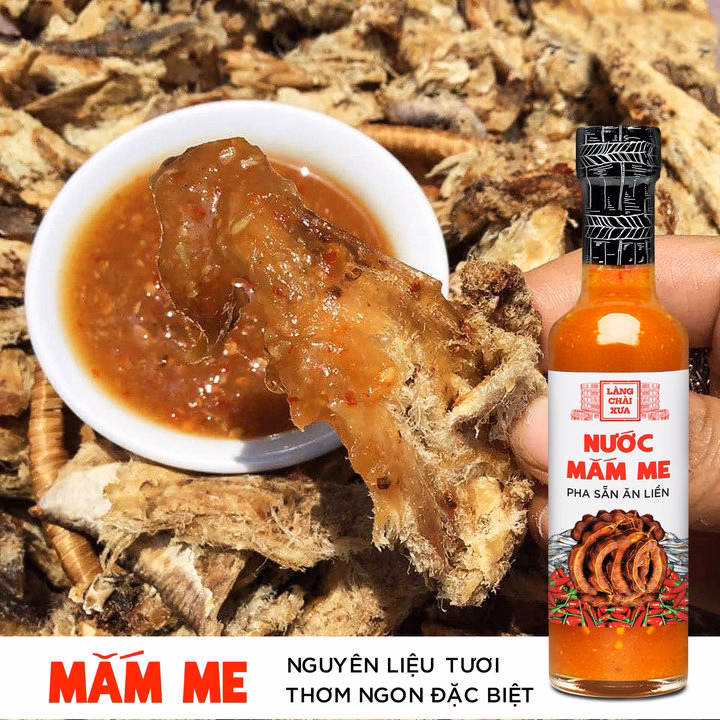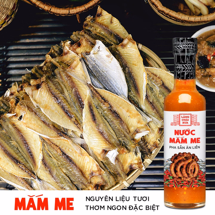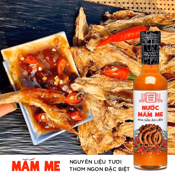 Nước mắm me tỏi ớt Làng Chài Xưa rất thơm ngon và khác biệt, được làm công phu bằng nguyên liệu tươi. Nước mắm nhỉ cá cơm nguyên chất 40N đạm ủ thùng gỗ, me chín, tỏi và ớt xiêm tươi hòa quyện nồng nàn giúp món ăn ngon hơn rất nhiều, đặc biệt là các loại cá khô, cá chiên. Hãy cảm nhận hương vị thơm ngon tự nhiên.