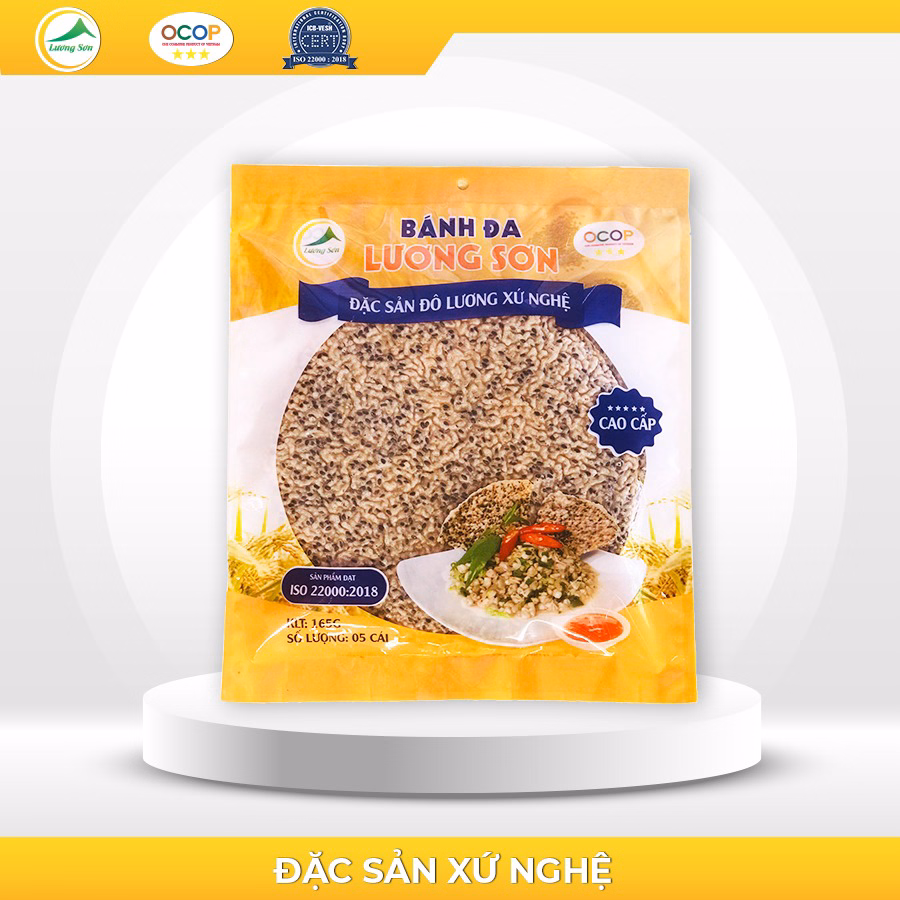Bánh Đa Lương Sơn là đặc sản nổi tiếng của làng nghề Bánh Đa Đô Lương – Nghệ An. Nguyên liệu làm bánh hoàn toàn tự nhiên, sản phẩm không có phụ gia và chất bảo quản. Bánh được nướng chín đều và đóng gói đạt tiêu chuẩn vệ sinh an toàn thực phẩm trên dây chuyền sản xuất công nghệ hiện đại nên thời gian bảo quản lâu mà vẫn bảo đảm được độ thơm giòn và hương vị đậm đà.