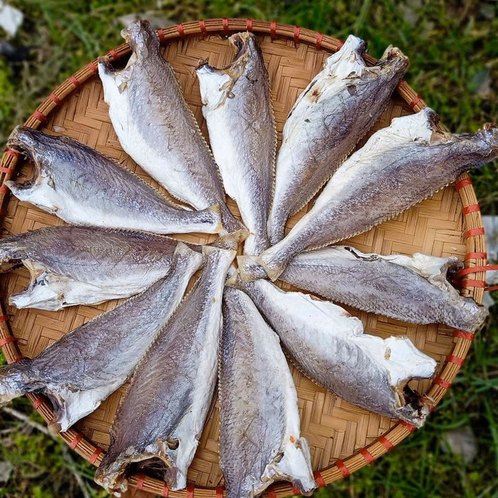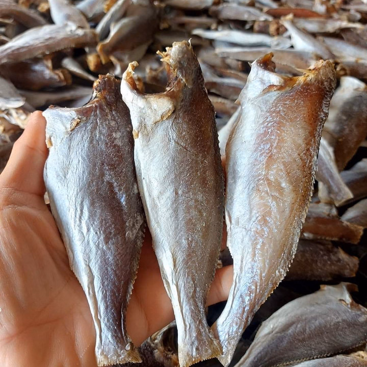 Khô cá đù được làm từ cá đù tươi, làm sạch ướp mặn với muối và phơi nắng, không chất bảo quản