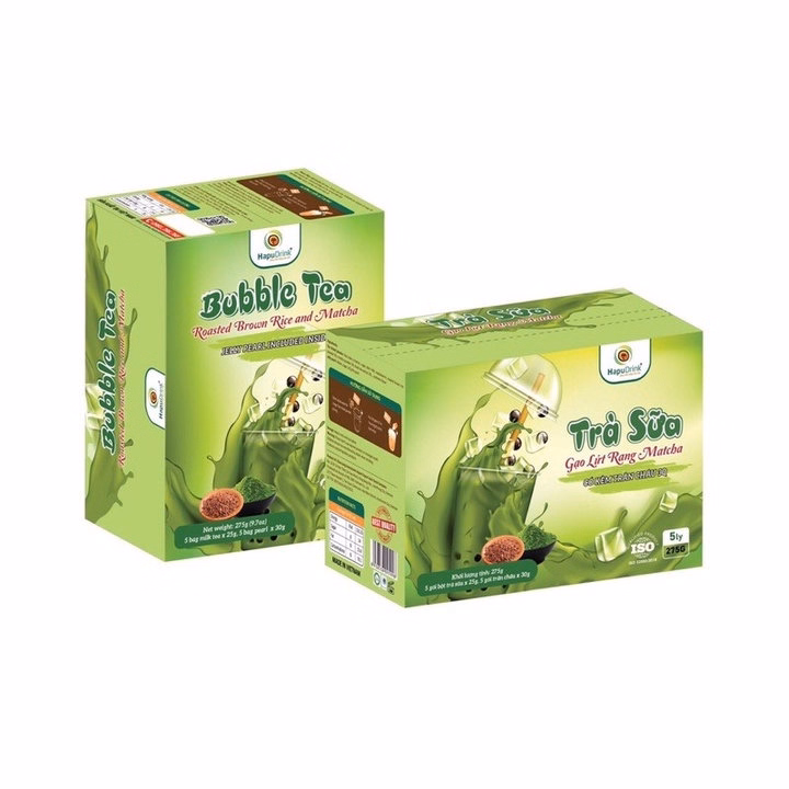 + Trà sữa gạo lứt rang Matcha 275g ( 5 ly) Gồm 05 gói trà sữa+ 05gói chân châu