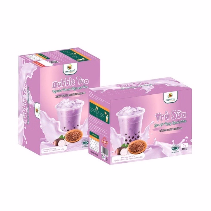 + Trà sữa gạo lứt rang Khoai môn 275g( 5 ly)Gồm 05 gói trà sữa+ 05gói chân châu