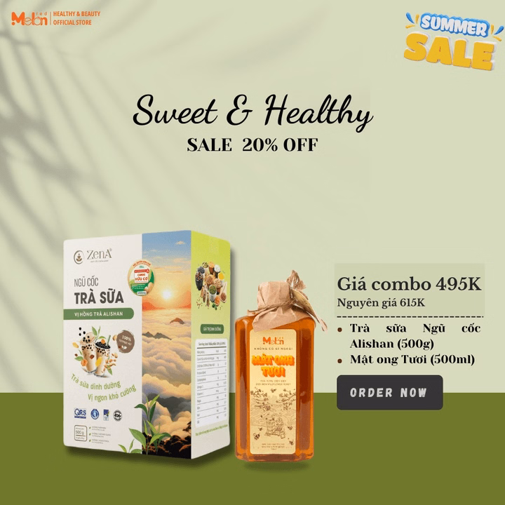 Combo_Ngũ Cốc Trà Sữa Alishan 500G & Mật Ong Tươi 500Ml_Redmelon