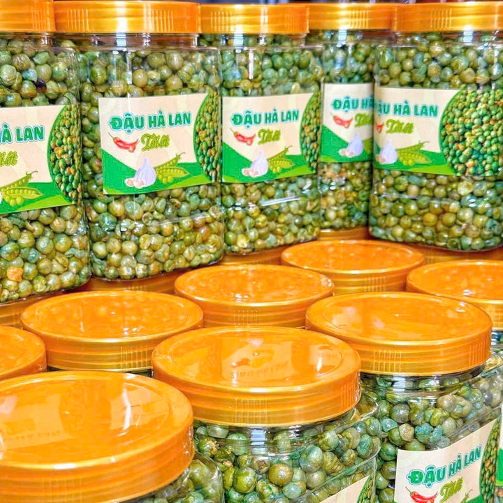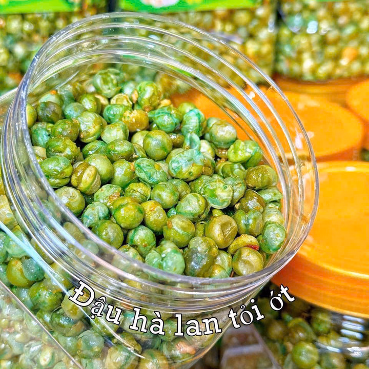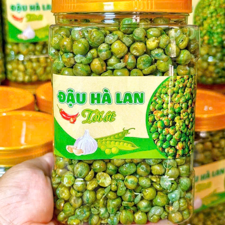 🌟 🌟 Đậu Hà lan hạt nhỏ thơm ngon, thêm vị cay của ớt, vị mặn mà của muối . Ngoài ra không sử dụng chất phụ gia và bảo quản. Sản phẩm để lâu được và ăn chay được.