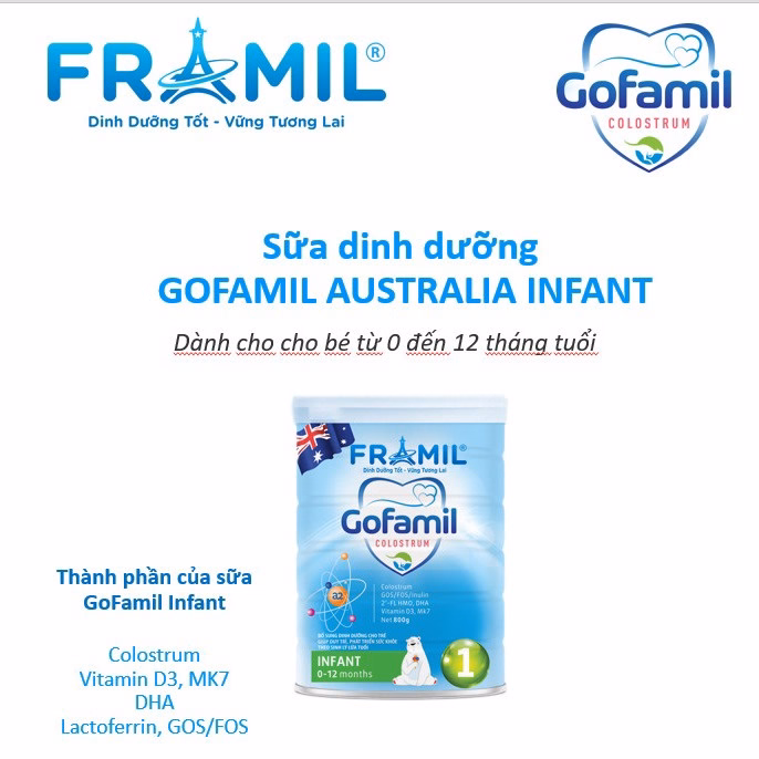 Sữa Gofamil Infant với công thức đặc biệt giúp bổ sung cho bé nguồn dinh dưỡng dồi dào giúp các bé phát triển toàn diện về trí tuệ và thể chất. Sữa Gofamil Infant là sản phẩm được phát triển bởi Miwi Australia được nghiên cứu đặc biệt với các thành phần và dưỡng chất giống sữa mẹ dành riêng cho trẻ từ 0 đến 12 tháng tuổi.
