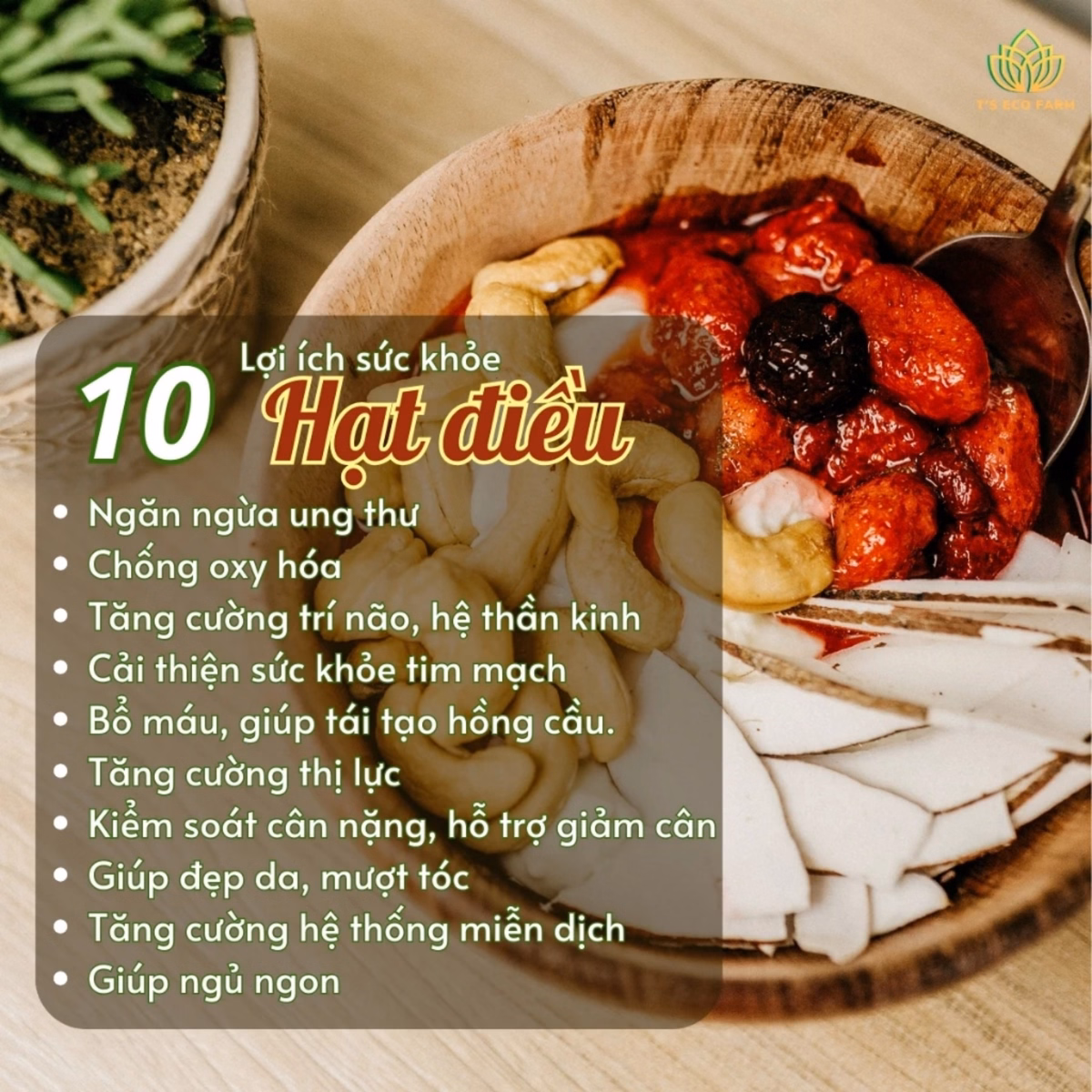 Hạt điều rất giàu sắt, phốt pho, selen, magiê và kẽm….
