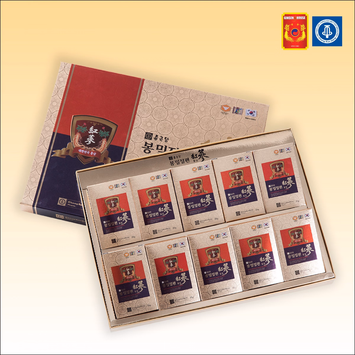 Thành phần: Hồng sâm 50%, mạch nha 35%, syrup ngô 10%, mật ong 5%