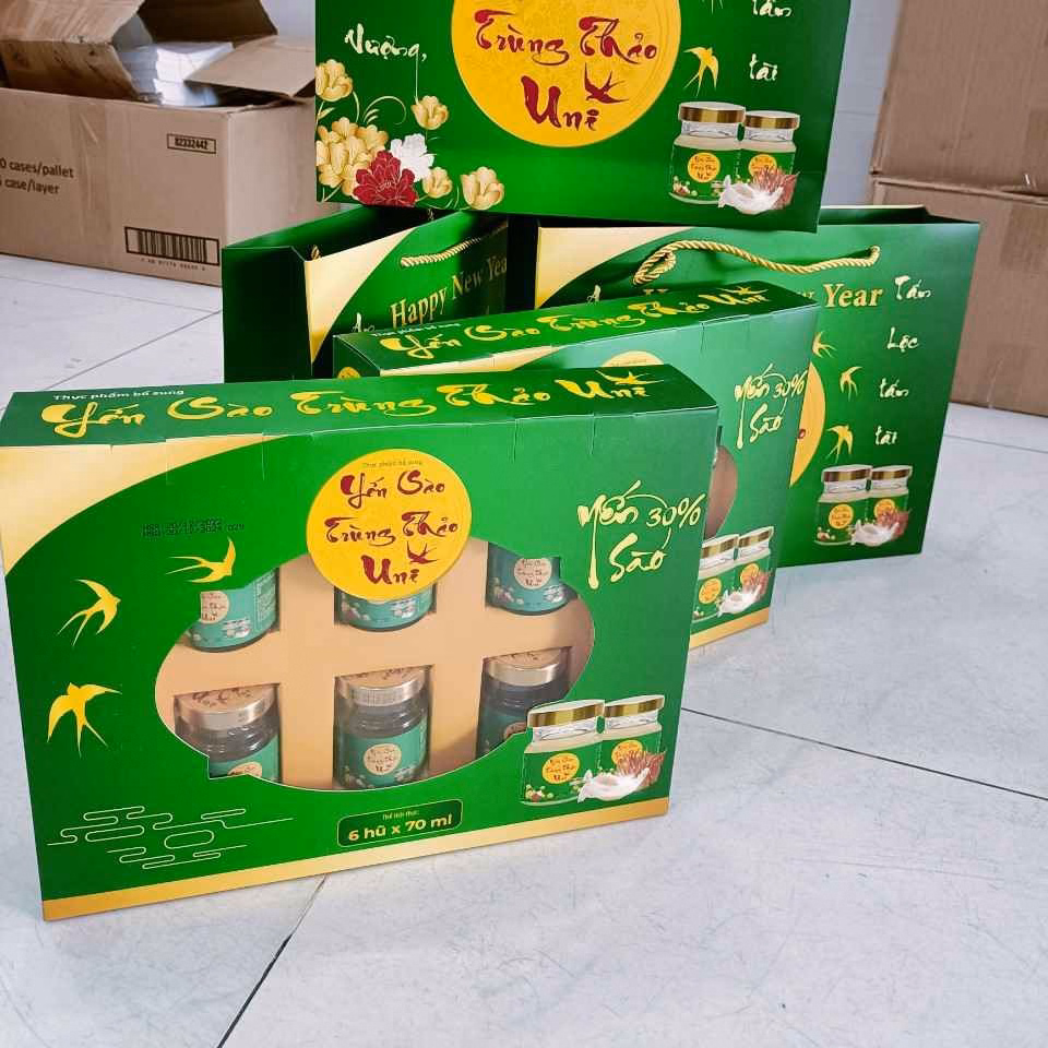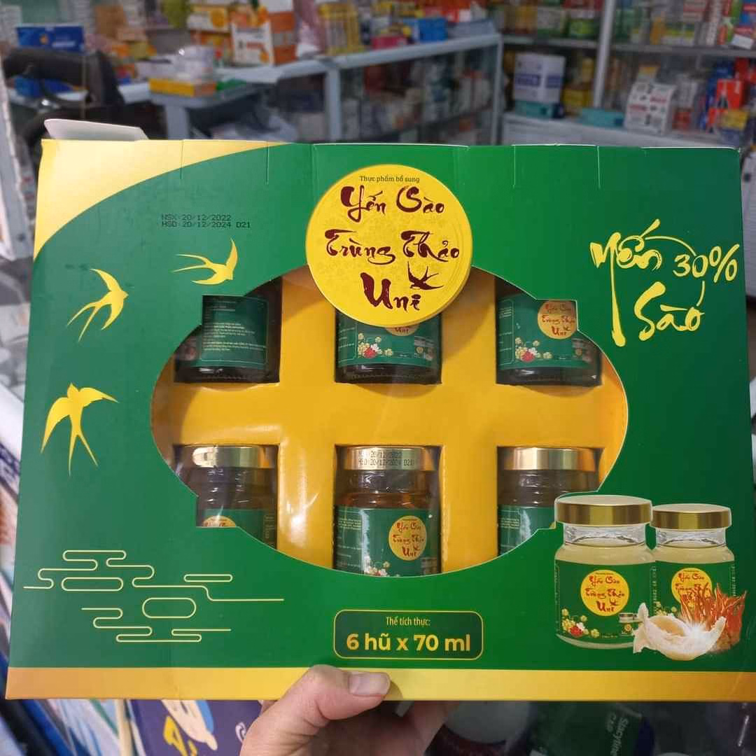 Tên sản phẩm: Hộp 6 Lọ 35% Yến Sào Đông Trùng Hạ Thảo Cao Cấp – Uni Pharma