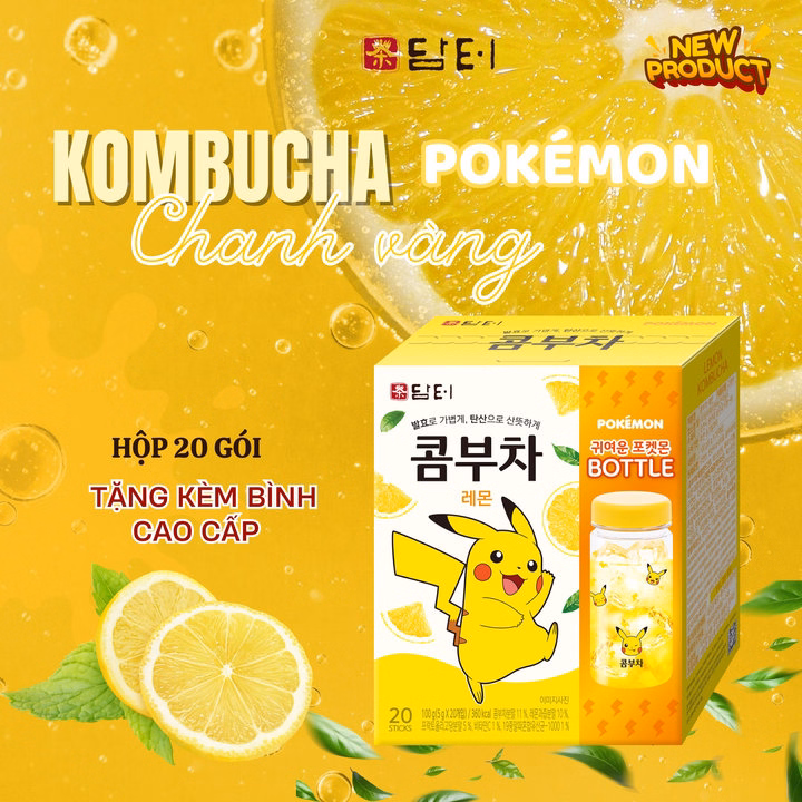 [Hộp] (Tặng Kèm Bình Nhựa Pokemon)Trà Kombucha Hàn Quốc Các Vị Nho,Chanh 100G – Damtuh
