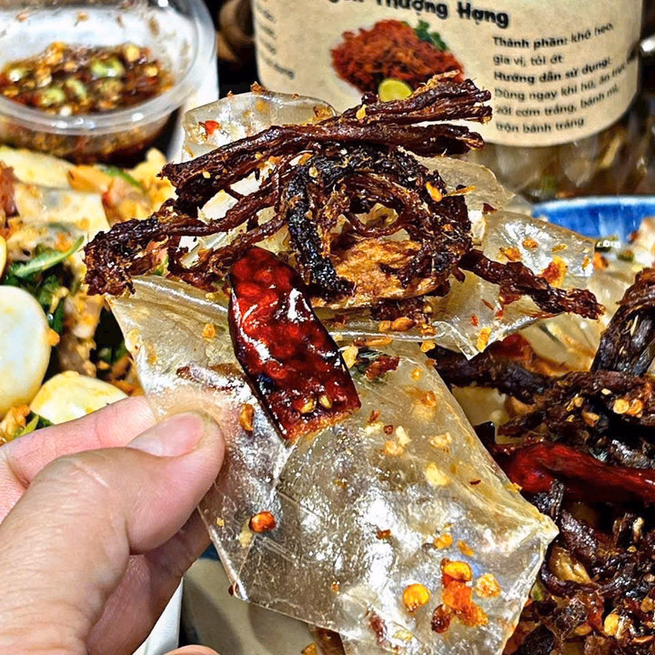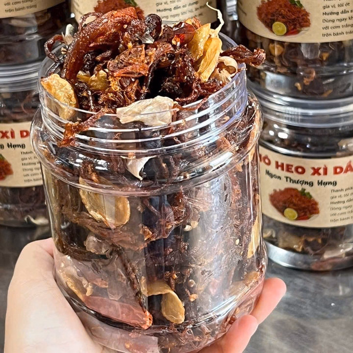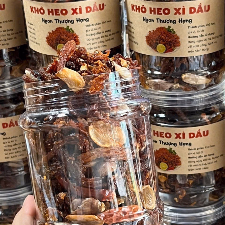 🥩 Từng sợi khô heo mềm dai, thấm đẫm sốt xì dầu đậm đà, kết hợp chút tiêu cay cay, chút ngọt từ dầu hào, chút thơm từ tỏi ớt – tạo nên hương vị ngon không thể cưỡng!