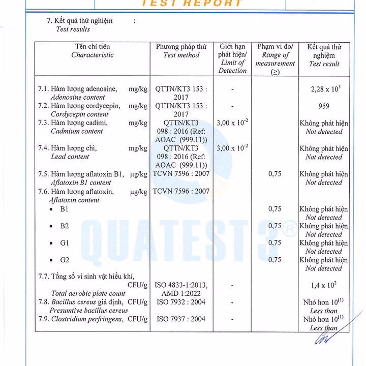 Thành phần: 100% quả thể nấm trùng hạ thảo sấy khô thượng hạng, theo phương pháp sấy thăng hoa.