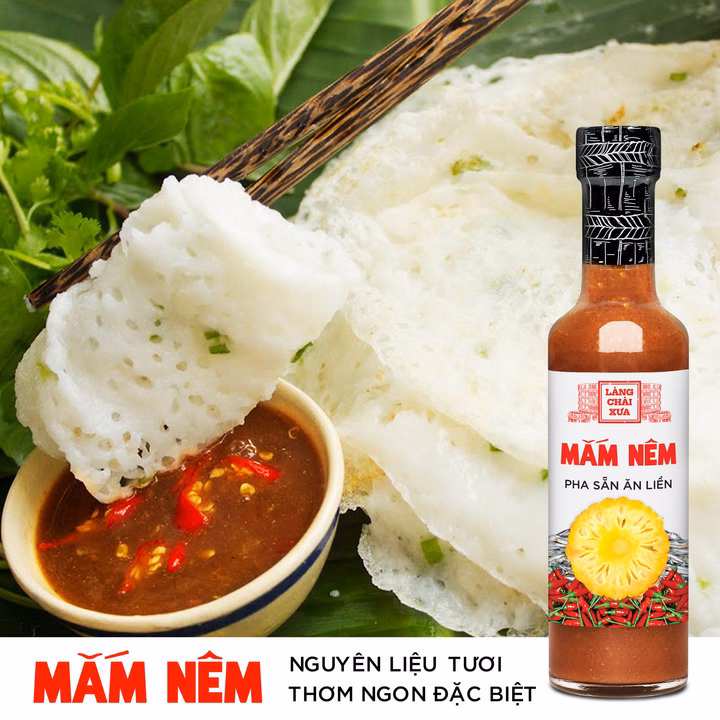 Mắm nêm pha sẵn Làng Chài Xưa rất thơm ngon và khác biệt, được làm công phu bằng nguyên liệu tươi. Mắm nêm cá cơm ủ thùng gỗ, trái thơm tươi, chanh tươi, tỏi và ớt xiêm tươi hòa quyện nồng nàn giúp món ăn ngon hơn rất nhiều. Đặc biệt là bánh tráng cuốn tôm thịt hoặc bún thịt heo luộc.