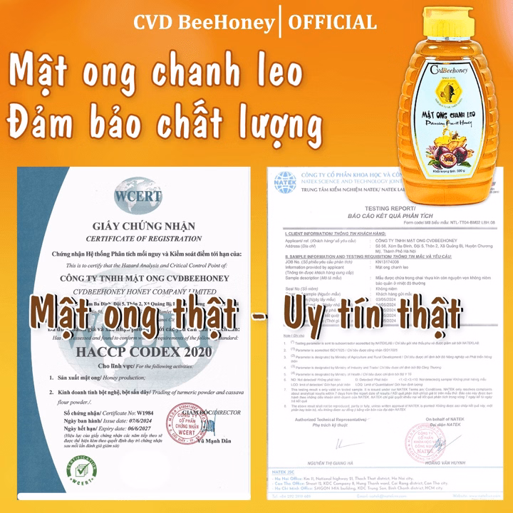 🔴 Được sản xuất bởi Công ty Tnhh Mật Ong Cvdbeehoney, có địa chỉ rõ ràng, giấy chứng nhận Vsattp, Haccp.