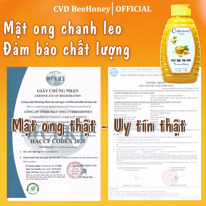 🔴 Được sản xuất bởi Công ty Tnhh Mật Ong Cvdbeehoney, có địa chỉ rõ ràng, giấy chứng nhận Vsattp, Haccp.