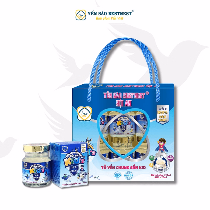 [Mua 1 Tặng 1] Yến Sào Bestnest Hội An – Tổ Yến Chưng Sẵn Kid’S 18%- Hộp Quai Xách 6 Hũ X 70Ml