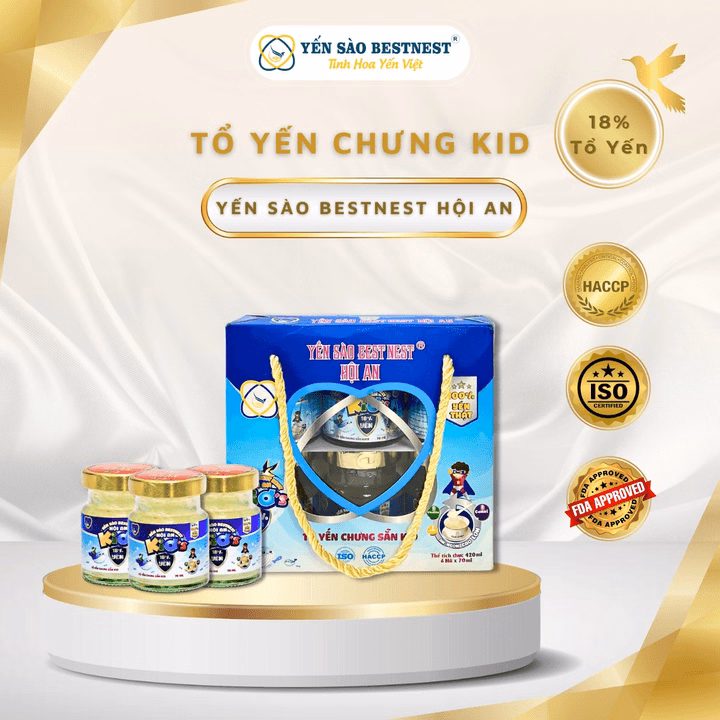 Thông tin cơ bản sản phẩm: Hũ yến sào chưng sẵn Bestnest Hội An Kid – Bổ Sung Dinh Dưỡng, Tăng Cường Hệ Miễn Dịch là sản phẩm có thành phần gồm tổ yến và nhiều thành phần khác kết hợp tạo thành 1 thức uống siêu ngon, bổ dưỡng, được tin dùng bởi người tiêu dùng Việt.
