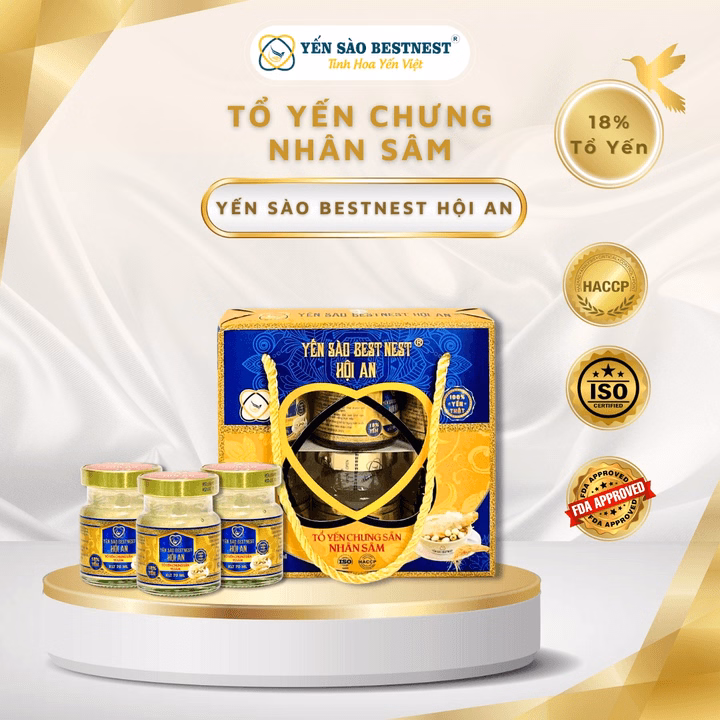 Thông tin cơ bản sản phẩm: Hũ yến sào chưng sẵn Bestnest Hội An Nhân Sâm – Bổ Sung Dinh Dưỡng, Tăng Cường Hệ Miễn Dịch là sản phẩm có thành phần gồm tổ yến và nhiều thành phần khác kết hợp tạo thành 1 thức uống siêu ngon, bổ dưỡng, được tin dùng bởi người tiêu dùng Việt.
