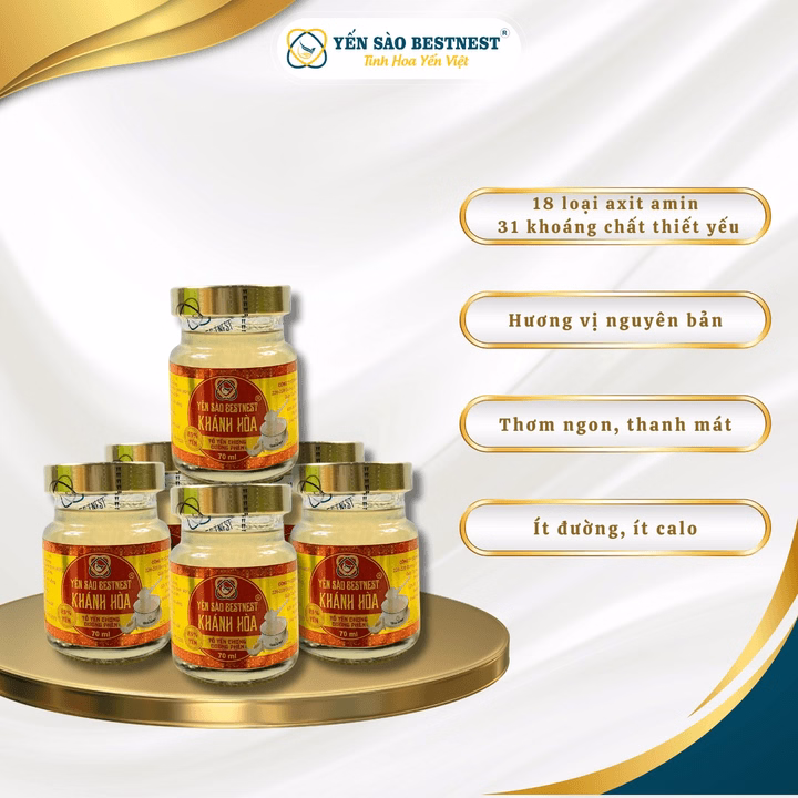 Dựa theo kết quả phân tích yến chưng của Viện Công nghệ Sinh học, yến sào Bestnest Khánh Hòa có 18 loại acid thiết yếu cho cơ thể con người và 40 loại khoáng chất, nhiều nguyên tố vi lượng thiết yếu cho cơ thể như: kẽm, sắt, kali, canxi…