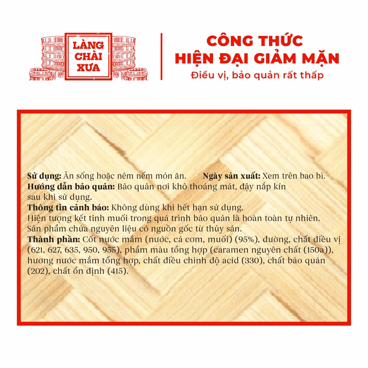 – Các dòng Làng Chài Xưa chai thủy tinh – không dùng điều vị hay bảo quản