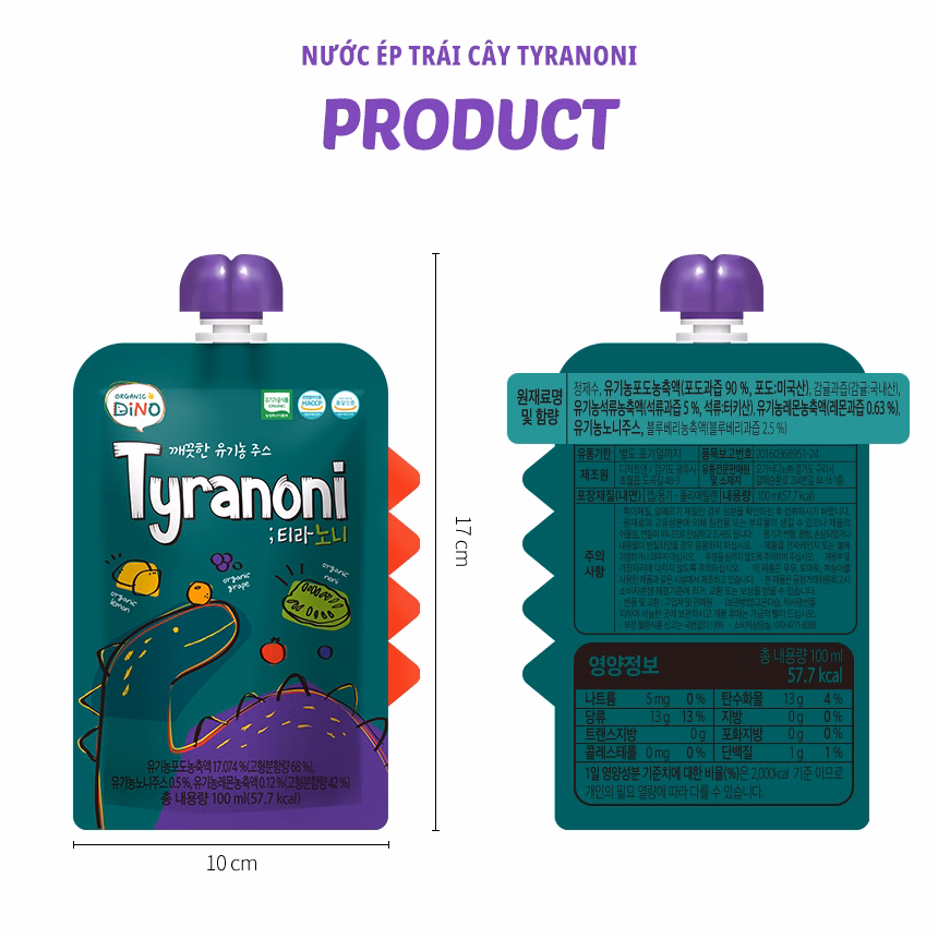 Tên sản phẩm: Nước Ép Trái Cây Hữu Cơ Sạch Tyranoni 100ml – Organic Dino