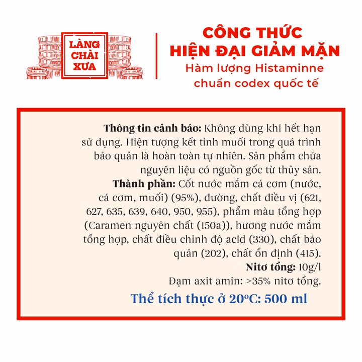 Nước mắm chuẩn truyền thống nên khi để lâu nước mắm sẽ sậm màu và có thể có kết tinh muối dưới đáy chai, không ảnh hưởng đến an toàn vệ sinh thực phẩm.
