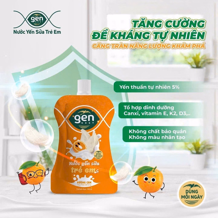 Nước Yến Sữa Trẻ Em Gen Nest Hương Trái Cây Bổ Sung Canxi, Vitamin L019