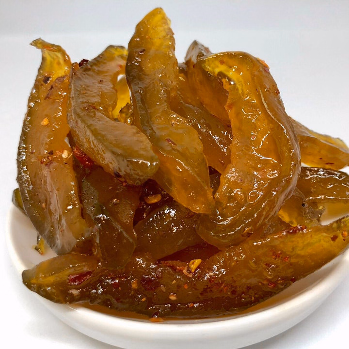Ô mai Cóc tách hạt xào gừng hấp dẫn bởi vị chua ngọt hài hòa, tuy đã được xào mà vẫn giữ được độ giòn của trái cóc, lại thoảng hương gừng cay thơm dịu nhẹ thật quyến rũ.
