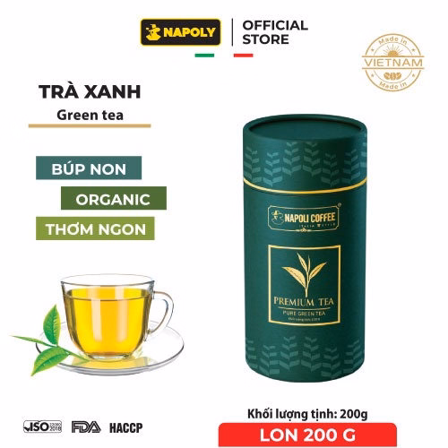 Trà Xanh Napoli là được tuyển chọn từ những búp trà tươi non canh tác trên vùng thổ nhưỡng Cầu Đất Tây Nguyên. Trà có hương thơm dễ chịu, thoải mái, vị trà không quá chát mà chát dịu, hơn nữa hậu ngọt rất thanh đọng lại ở cổ lâu, dai.